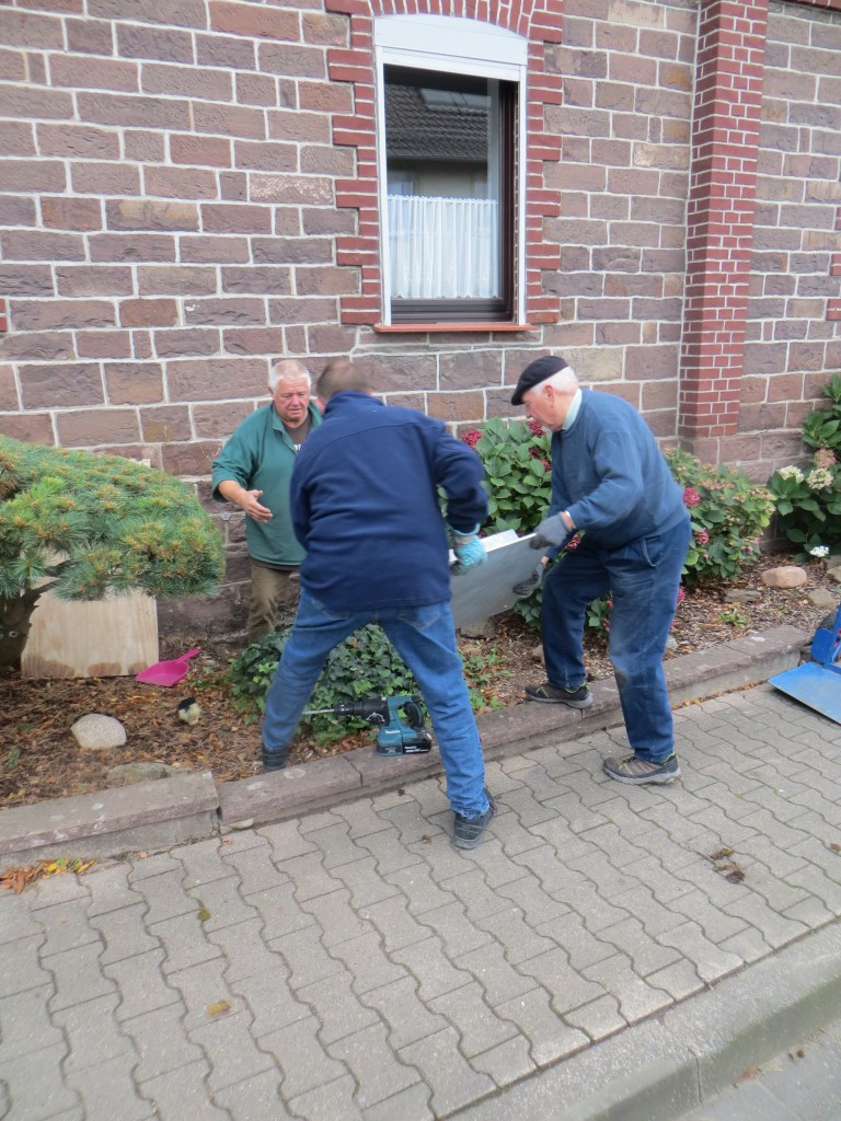 Auf drei Wiesen und in vier Vorgärten in Boffzen liegen aktuell Holzplatten. Was hat es mit ihnen auf sich? An diesen Punkten stellt der Verein Freundeskreis Glas Anfang November elf Glasstelen auf. Unter den Holzplatten liegen geschützt deren Fundamente. Am Mittwoch, 14. Oktober 2020, montierten die Helfer des Vereins – Erhard Dormann, Karl-August Fricke, Hans-Hermann Henze und Walter Waske – bereits die Metallfüße der Stelen auf die Fundamente. Die Stelen bilden zusammen den neuen geschichtlichen Rundweg „Auf den Spuren der Glasindustrie in Boffzen“ und geben Einblick in 150 Jahre Glasherstellung. Auf dieser Internetseite lässt sich zudem in Zukunft noch einiges mehr erfahren.