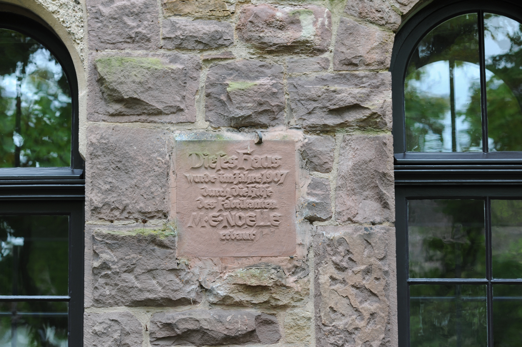 Das Pfarrhaus, das auf seiner Vorderseite mit einer Tafel (unten) an seinen Gönner, Max Eugen Noelle, bis heute erinnert. Foto: Stefanie Waske