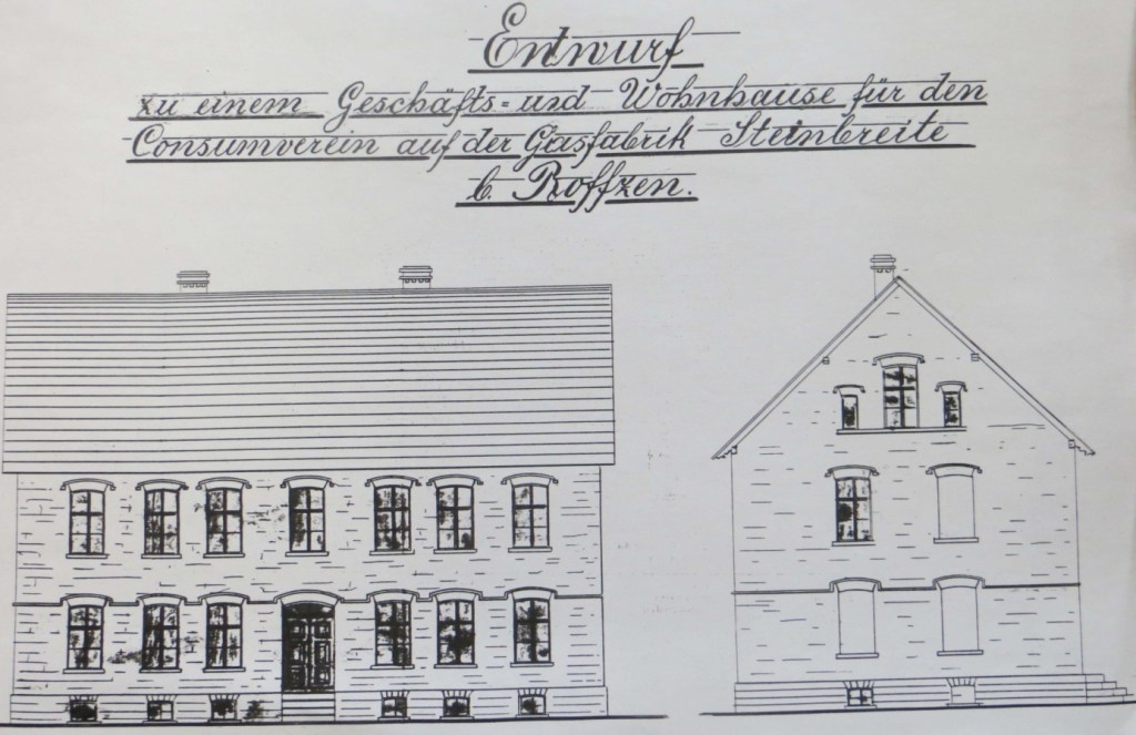 Bauzeichnung des Gebäudes für den 1891 gegründeten Konsumverein Brückfeld (Archiv der Samtgemeinde Boffzen, unverzeichnet)