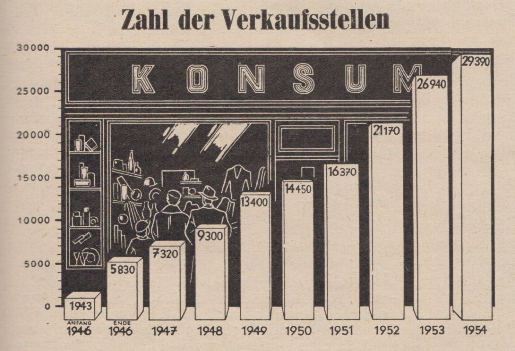Rasches Wachstum unter staatlicher Protektion: Konsumläden in der DDR (Der Handel 5, 1955, Nr. 23, 5)