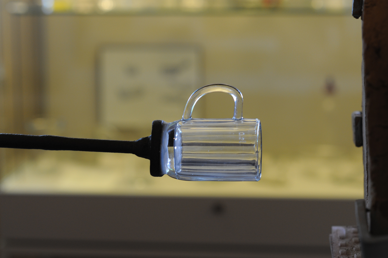 Aber wie wurde ein solches Bierglas hergestellt? Bei den Seideln handelte es sich um Pressglas. Sie erhielten ihre Form mit Hilfe einer Presse – anders als Gläser, die von per Mund oder mit Hilfe einer Maschine geblasen wurden. Der Vorteil des Pressens war, dass sich robuste, schwere Gläser in größerer Stückzahl mit exakt denselben Abmessungen herstellen ließen. Ein mundgeblasenes Glas hingegen war nie derart gleichmäßig, zeigte immer auch die Fertigkeit des Glasmachers. Doch bei einem rustikalen Bierausschank in Kneipen, auf Festzelten oder in Brauereien war Glaskunst weniger von Bedeutung.