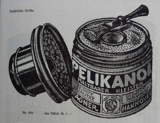 Damals wurde der Kleber so bekannt, dass sein Name Teil des deutschen Wortschatzes wurde. Der Hannoveraner Dadaist und Künstler Kurt Schwitters, der Werbung für Pelikan entwarf, widmete ihm 1930 eine Collage.[8]