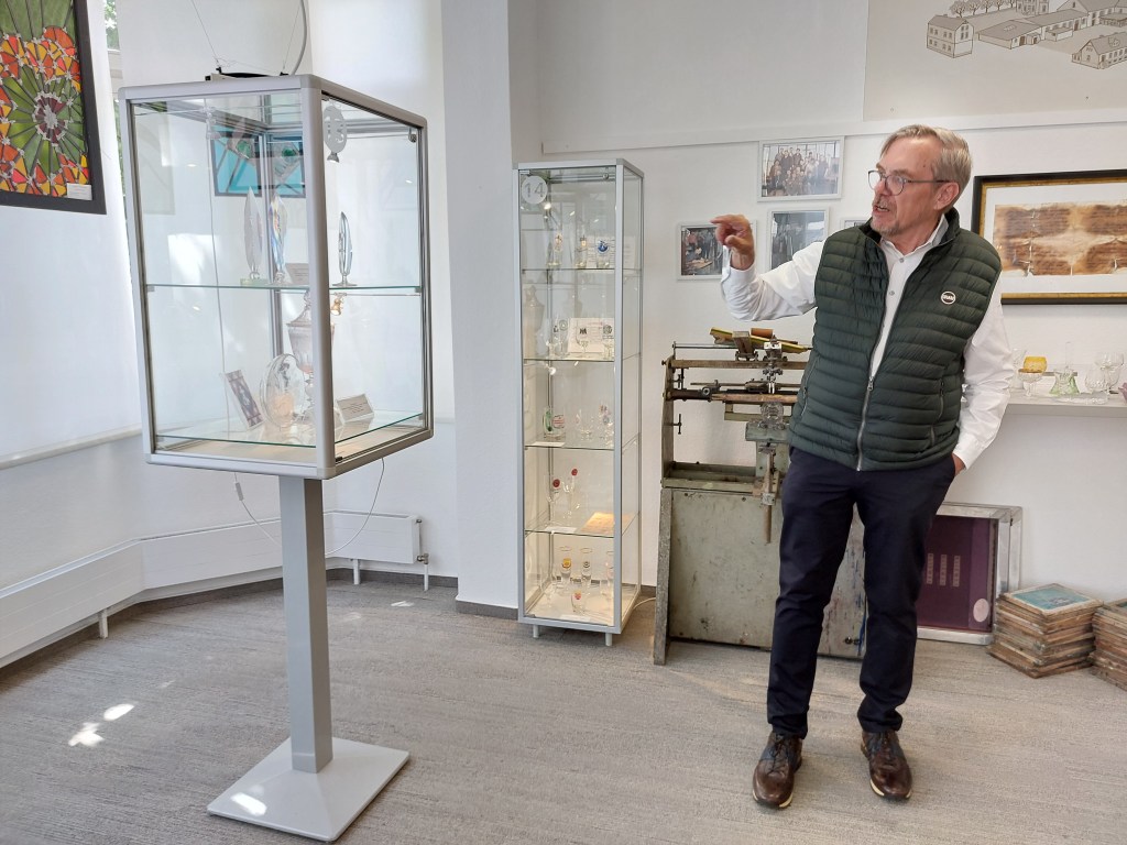 Anders als Boffzen besaß Bad Driburg aber ein zweites Standbein, den Glashandel. Lokale Großhändler prägten den deutschen Markt seit der Jahrhundertwende, dominierten ihn dann bundesweit bis heute. Die Handelsmarke „Leonardo“ steht für viele andere Angebote der Region. Im Museum wurde dies kundig vertieft, durch höchst unterschiedliche Exponate nahegebracht. Daneben gab es natürlich vielfältige „schöne“ Glasstücke, nicht zuletzt Kristall- und Hohlglas, zahlreiche Dekorationsartikel, Vasen und Gläser. Ein seltenes Glanzstück war auch die lokale „Glasfahne“, mit der die Driburger Glasarbeiter ihren Standesstolz in Kaiserreich und Nationalsozialismus präsentierten.