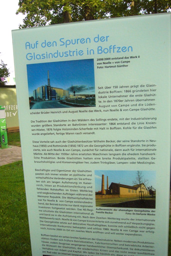 Am Wochenende wurde die an der Weser aufgestellte Informationsstele zur Geschichte der Boffzener Glasindustrie mutwillig attackiert und schwer beschäftigt. Die Täter*innen haben offenbar mit einem schweren Gegenstand auf die aus Sicherheitsglas bestehende Rückseite eingeschlagen und diese eingerissen. Diese Straftat fügt sich nicht nur an die bis heute nicht geklärte Zerstörung einer gegenüber von Noelle + von Campe gelegenen Stele an – oder an entsprechenden Vandalismus an der Skater-Bahn. Es bleibt zu hoffen, dass die Polizei dieses Mal erfolgreich ermittelt und die Schuldigen für den Schaden aufkommen müssen.
