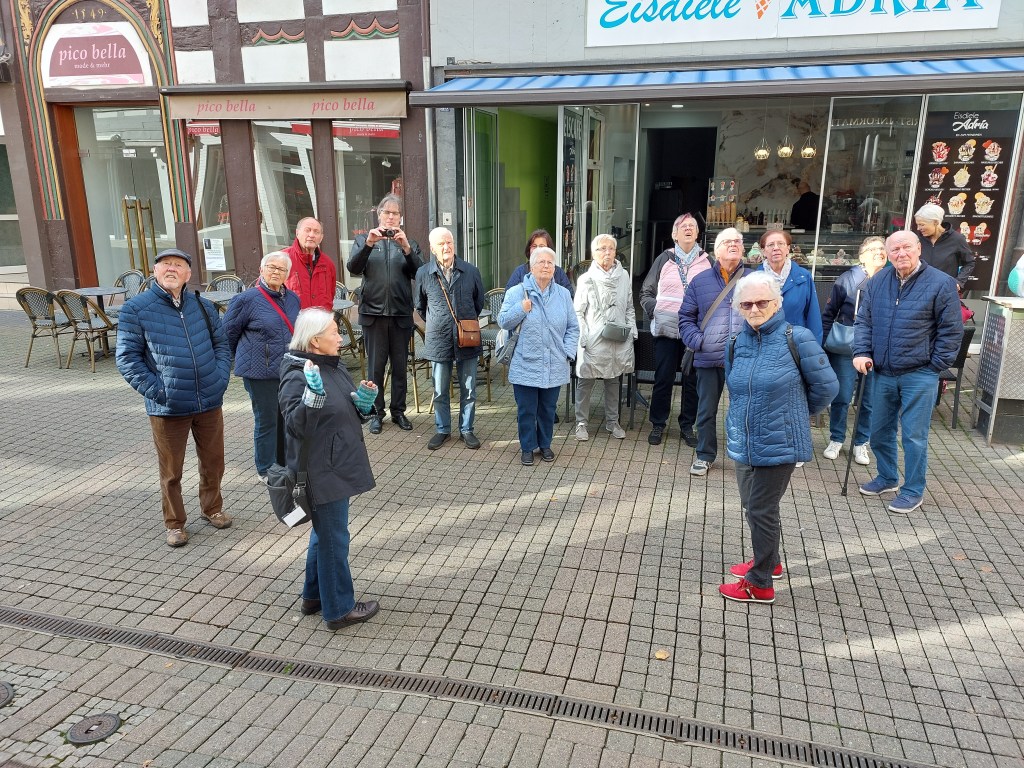 Nach dem Essen wartete Stadtführerin Johanna Schöneberg, um in einer Stunde viele Einblicke in die Geschichte Einbecks zu geben: in die zerstörerischen Brände in der Neuzeit, die Fachwerkhäuser mit Verzierungen im Stile der Weserrenaissance, die zahlreichen Bierbrauer oder das große Einzelhandels-Versand-Unternehmen von August Stukenbrok, das 1888 gegründet wurde und bis 1932 bestand. In 60 Minuten zeigten: Es lohnt wiederzukommen – nicht wegen der eleganten Limousinen oder dem starken Bockbier.