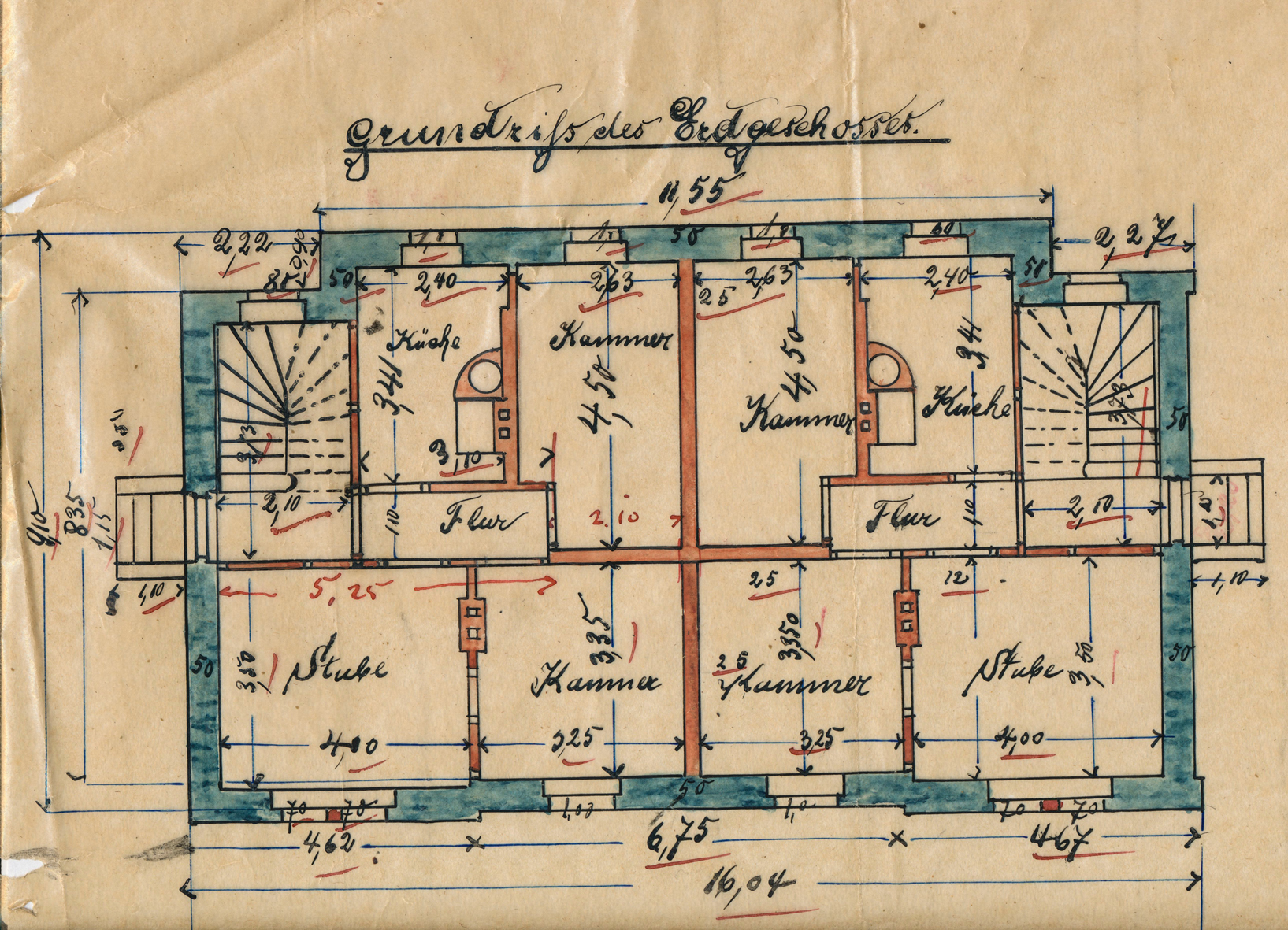 Bauzeichnungen der Werkswohnungen von 1898, zu denen auch dieses Haus gehörte Foto: Archiv Freundeskreis Glas
