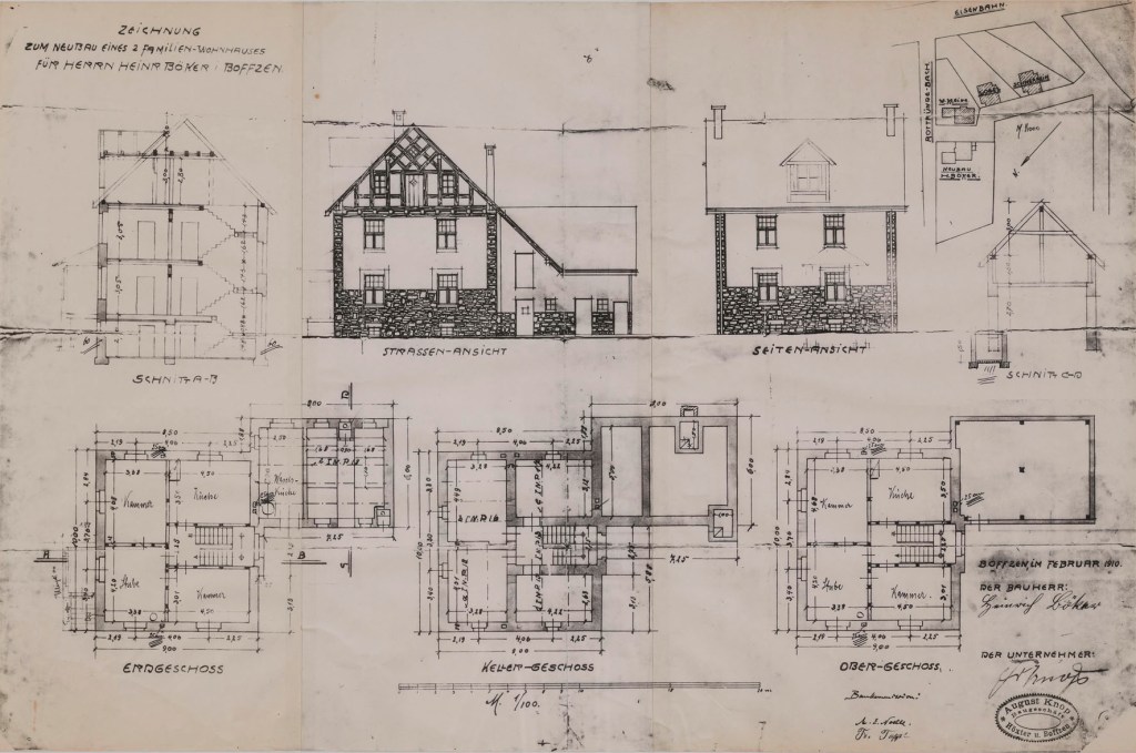 Zweifamilienhaus Heinrich Böker Steinbreite 6 von 1910, Planer: Baugeschäft August Knop, Foto der Bauzeichnung: Ehepaar Hille
