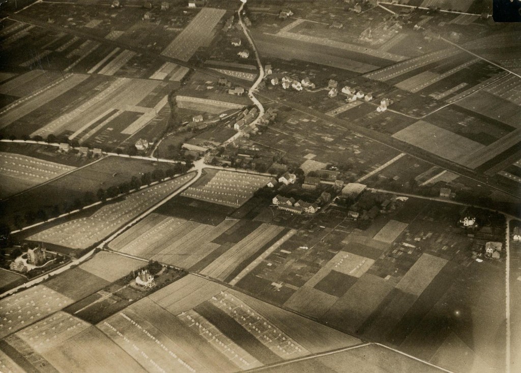 Luftaufnahme vor 1917 mit Blick auf die Wohnungskolonie der Steinbreite (oben rechts) Foto: Burckhard von Campe