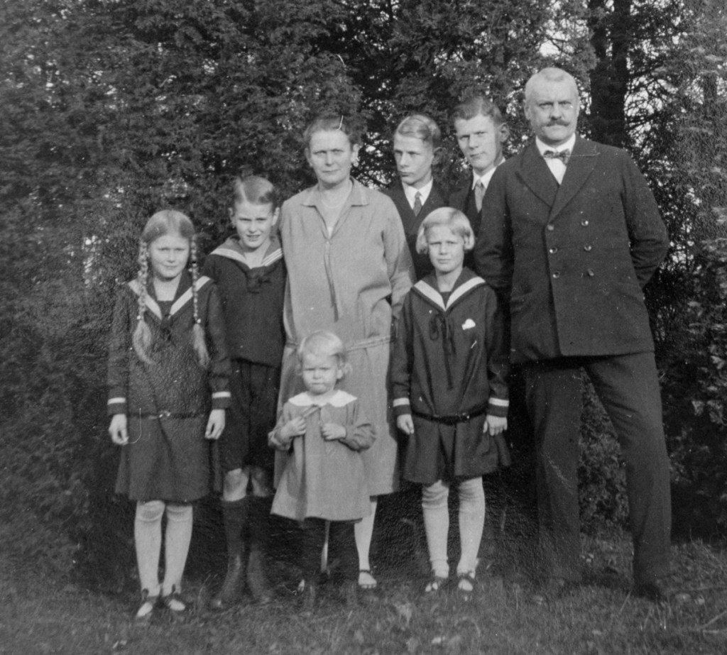 Familienfoto von 1927, von links, Eyla, Gord, Ehefrau Luise, Erika, Rudolf, Otto-Wilhelm, Ehemann Otto von Campe und die jüngste Tochter Ursula vor Mutter Luise Foto: Elisabeth Pophal